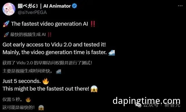 国产视频生成大模型 Vidu 2.0 上线:10秒即可“出片”,AI赋能创作的新时代